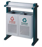 坐地式带盖冲桩孔钢制分类垃圾桶 HC2249 |